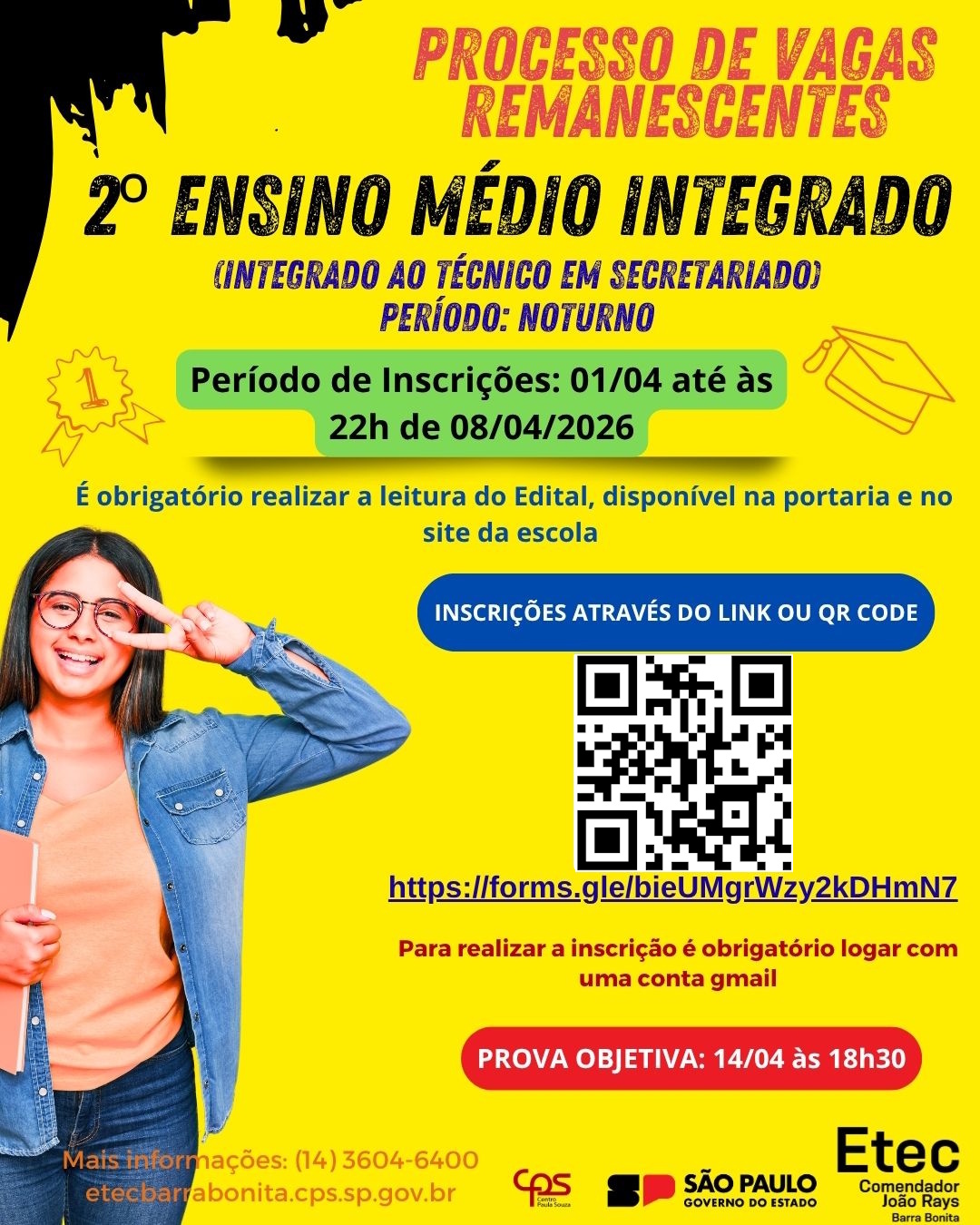 Processo vagas remanescentes 1° Semestre 2026 – 2° Integrado Secretariado